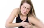 Такие боли в грудине могут служить признаком воспаления миокарда. Тогда они сопровождаются температурой и одышкой. При пневмонии подобная боль сопровождается температурой, кашлем с мокротой, кроме того, она, как правило, локализуется в той части грудины, где воспалено легкое. Локализация боли в правой грудине или в левой, которые усиливаются при вдохе и уменьшаются, если лечь на больную сторону, — это признак плеврита.